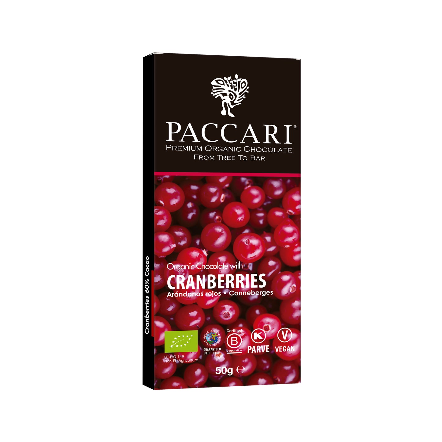 Award-winning, organic and vegan dark chocolate with 60% cocoa. A perfect blend with tangy dried cranberries, rich in vitamins and antioxidants.