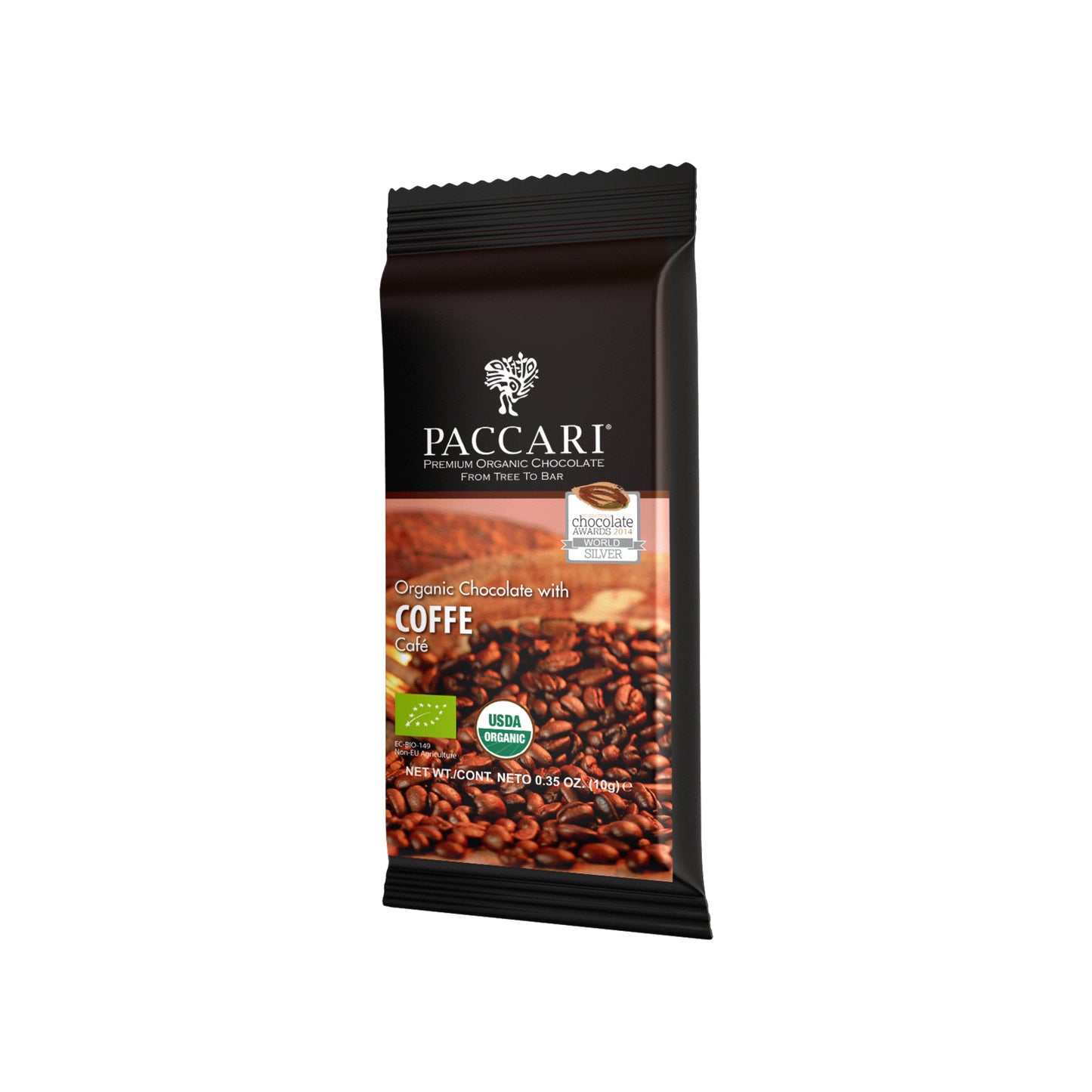Organic chocolate bar with pieces of espresso coffee beans. This box contains 4 chocolate bars, these are all nut free, dairy free, soy free, pea free, palm oil free and GMO free.
