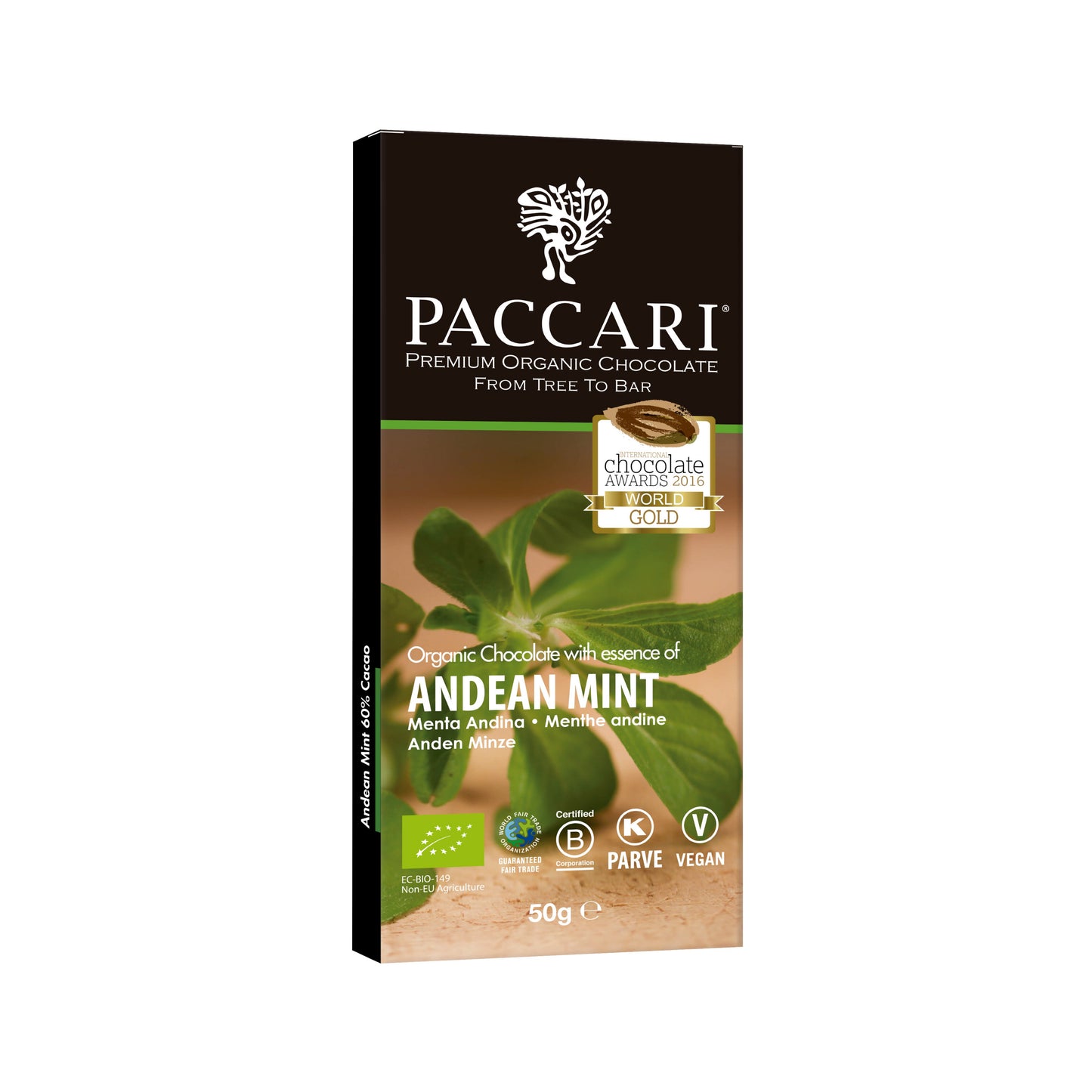 Award-winning, organic and vegan dark chocolate with 60% cocoa. A refreshing combination of smooth chocolate and aromatic Andean mint for a revitalising treat.